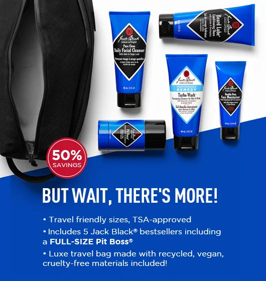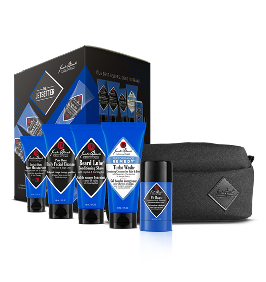 Five Jack Black® bestsellers & a luxe travel bag. For the man who always goes first class. Head-to-toe solutions in travel-friendly sizes, curated for the man on the move.