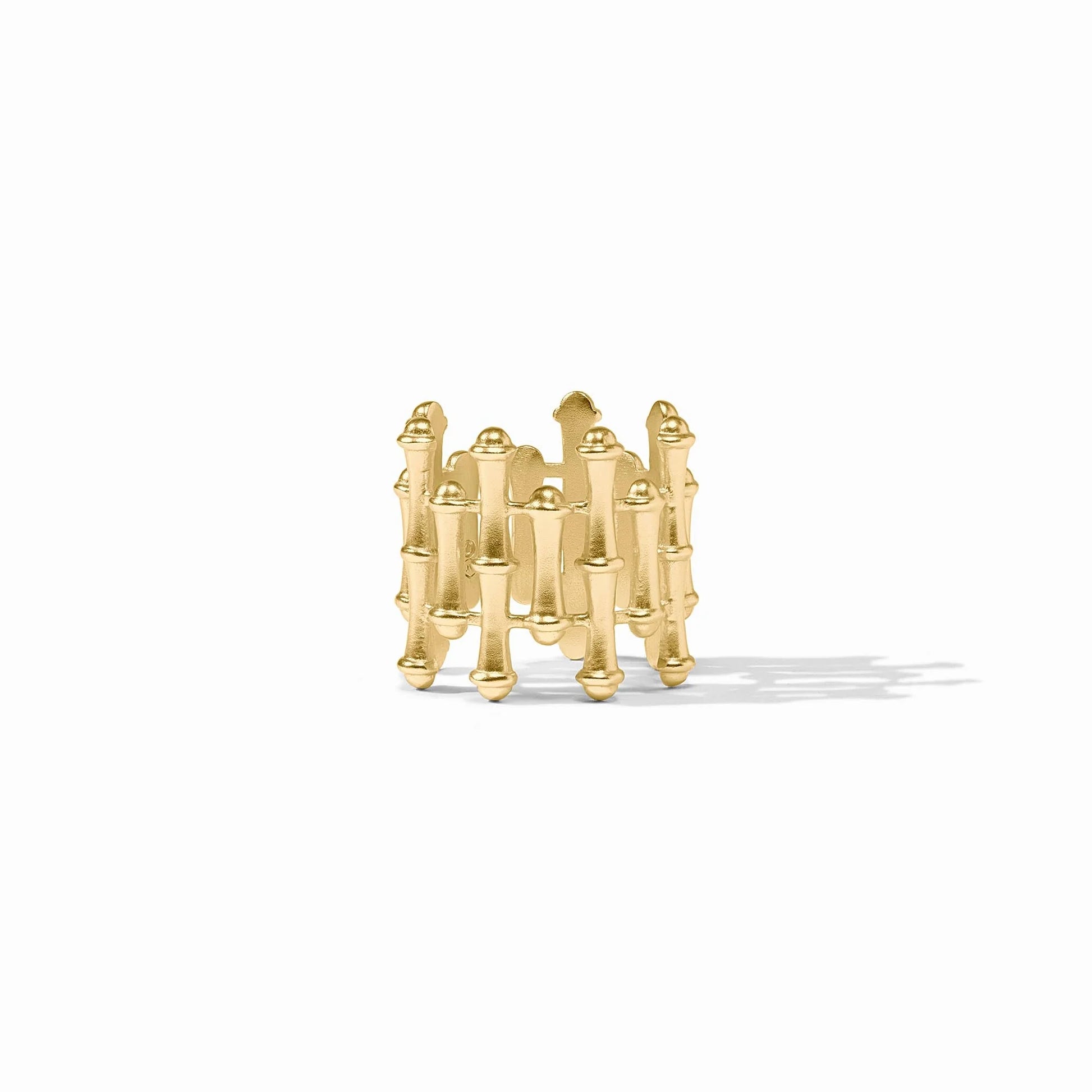 This airy ring's perfectly aligned rows of golden bamboo give a modern look to a timeless motif.