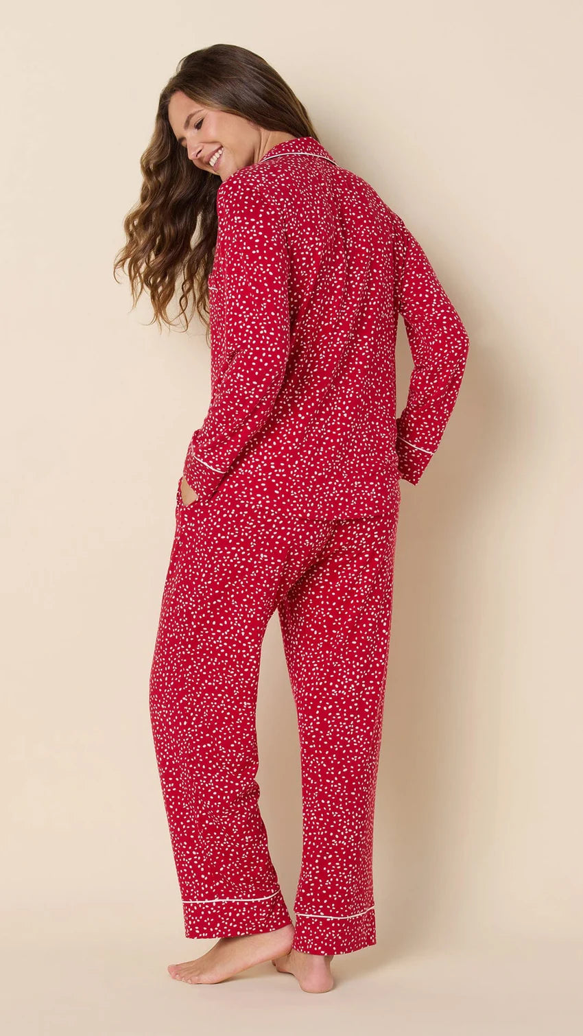 Confetti Dot Pima Knit Long-Sleeved Pajama - Red
