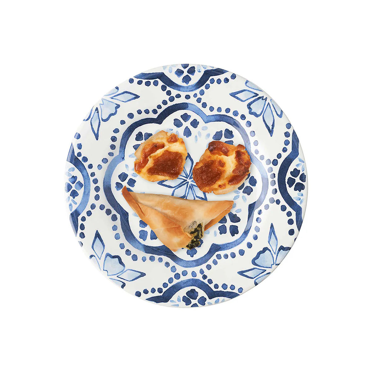 From Juliska's Wanderlust Collection- A journey to the sandy Iberian coast inspired this Iberian Journey motif. We've reinterpreted this regions stunning cobalt blue painted tiles onto key accent pieces such as this side/cocktail plate.