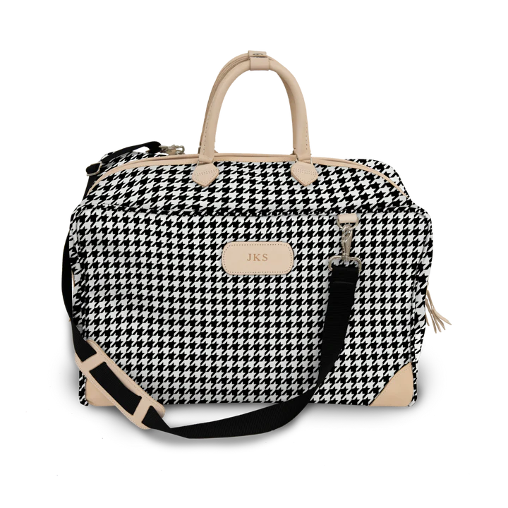 This bag features rolled leather handles and two large pockets on the inside. Size: 13h x 19.5w x 9.5d