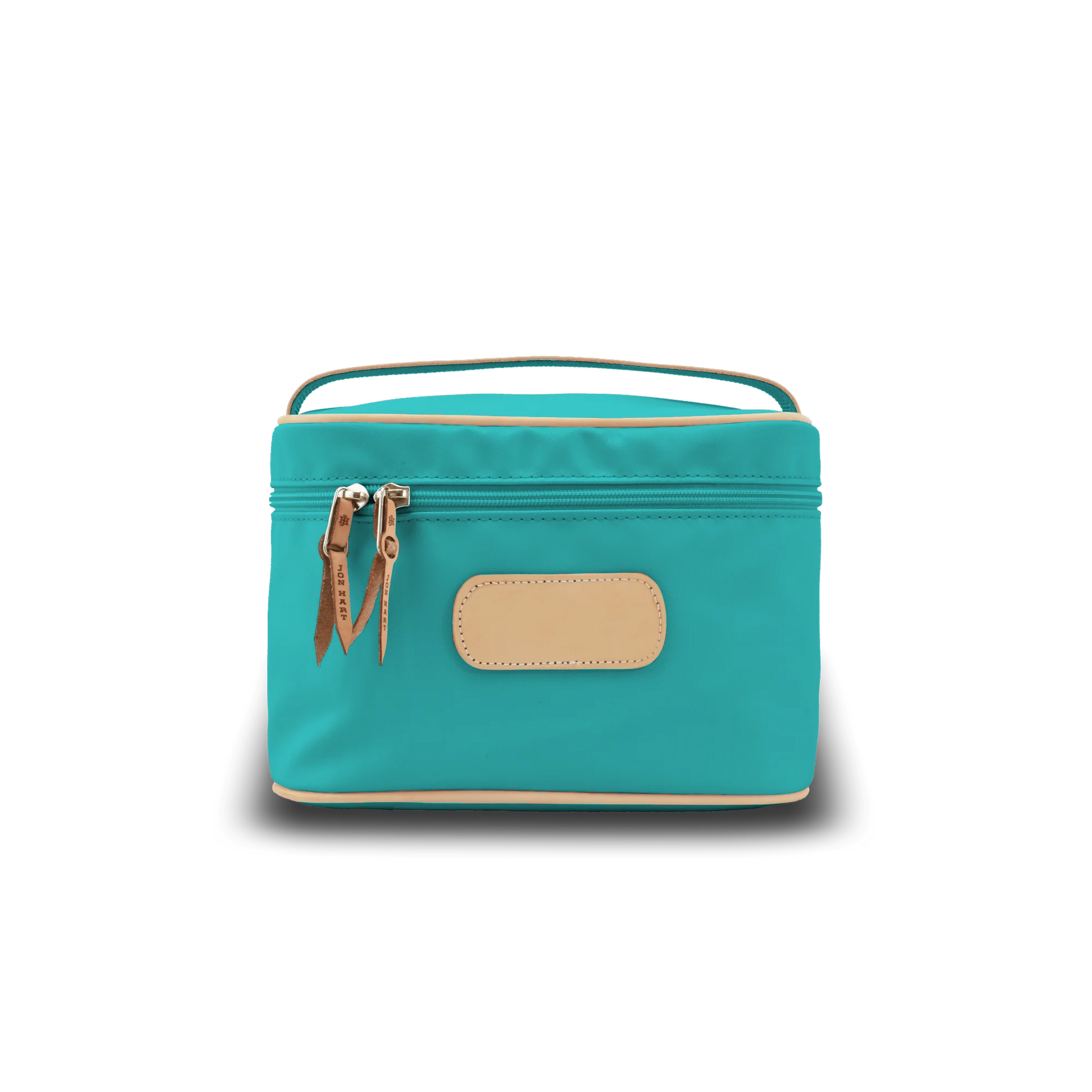 An essential Jon Hart piece, this Makeup Case combines refined craftsmanship with practical elegance. Constructed from durable vinyl-coated canvas with natural leather accents, it features a secure zippered closure and comfortable webbing-and-leather handle designed for effortless travel and daily use. The interior pocket keeps essentials organized, while the timeless design ensures years of reliable service. Pair it with a Makeup Case Organizer to maximize storage. Dimensions: 7h x 11w x 6d.