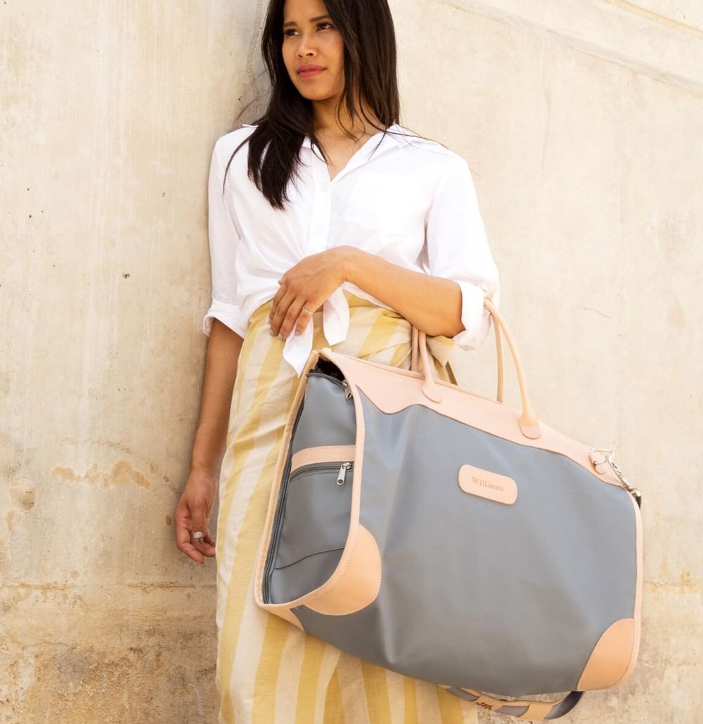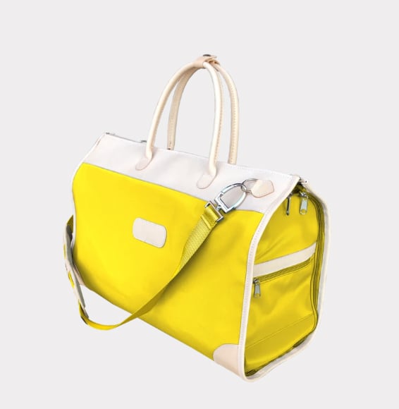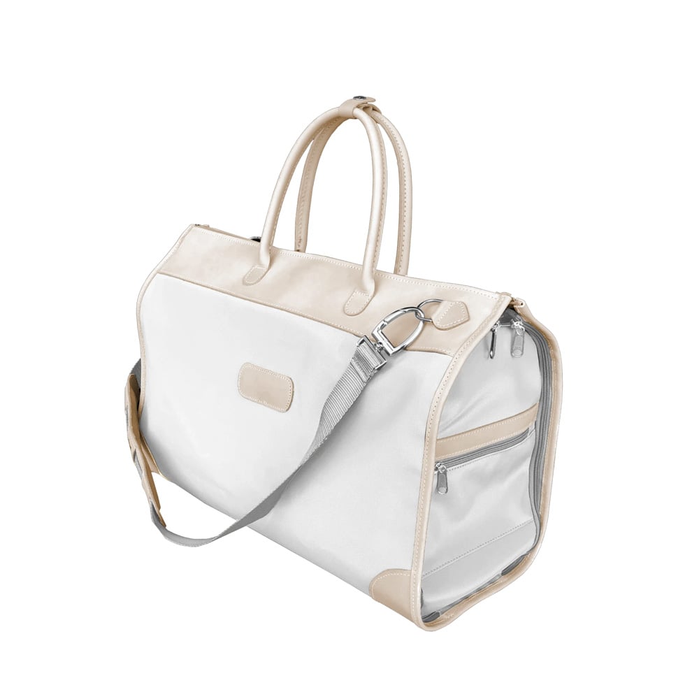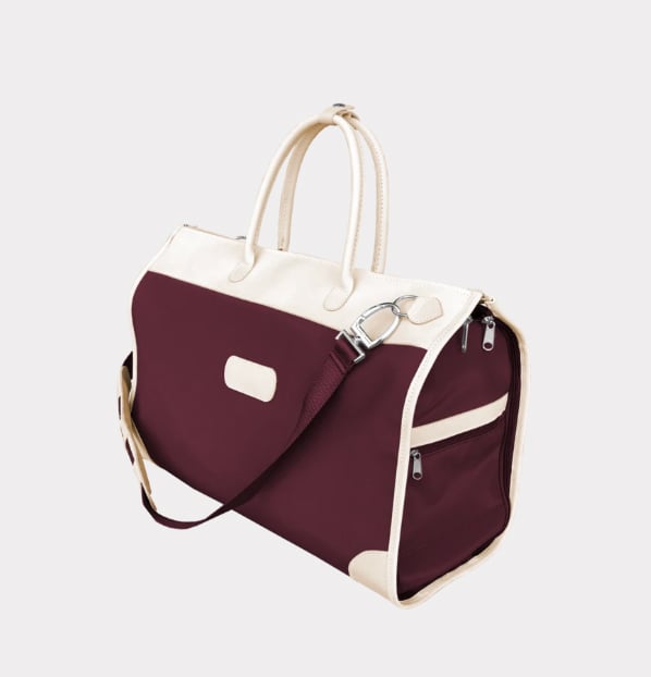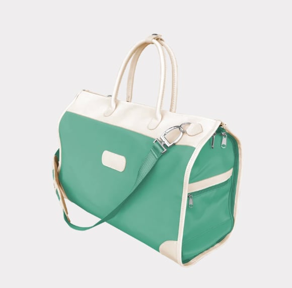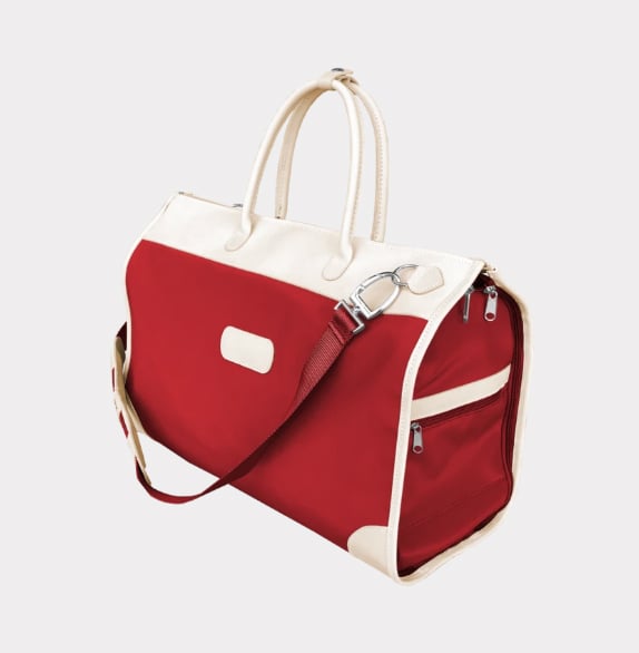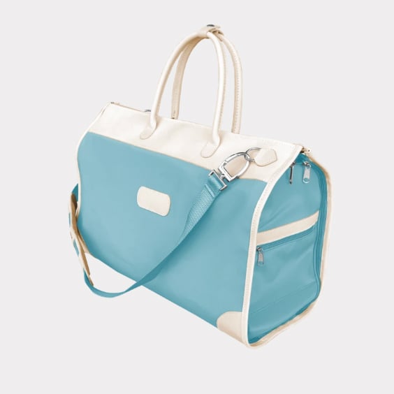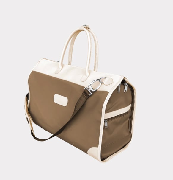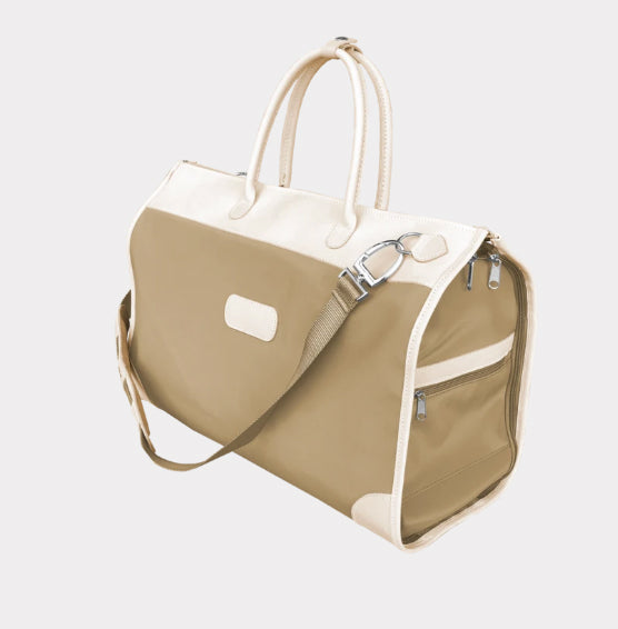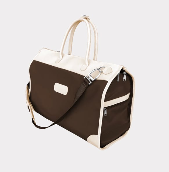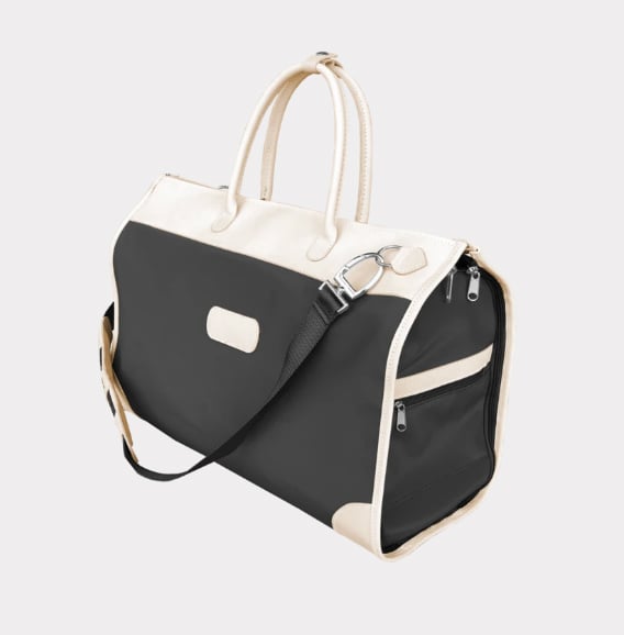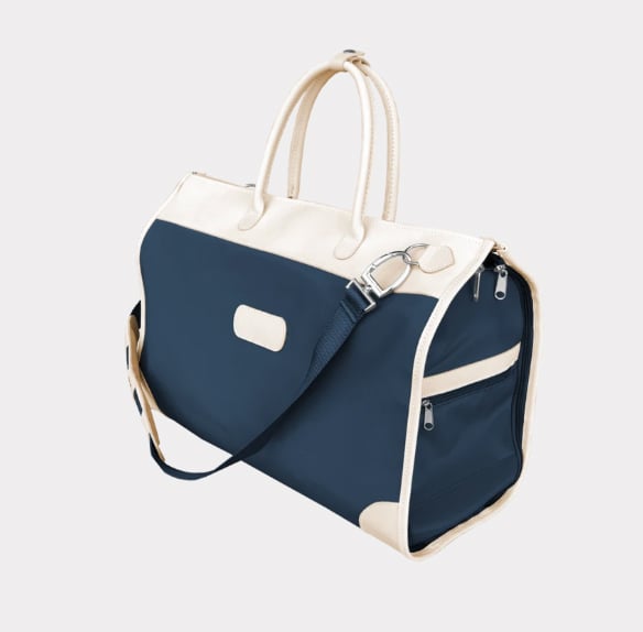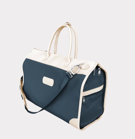 The Southtown is a must-have for travelers, this stylish carry-on compliant duffel bag fully unzips to convert into a hanging garment bag. Includes rolled leather handles, as well as an adjustable shoulder strap for comfort carry. Zippered exterior pockets on both ends & elastic interior pockets for shoes, socks, or undergarments. The zippered exterior pockets on the back of the bag double as a trolley sleeve. Comfortably fits up to 5 hanging garments in the garment sleeve. Comes with a removable hook for easy storing over any door. An elegant duffel bag when you need to carry it, a garment bag when you need to hang it, and folds completely flat when you need to stow it, the Southtown has plenty of room for all of your weekend essentials.
