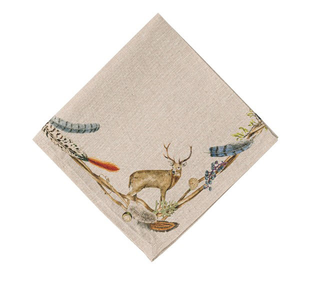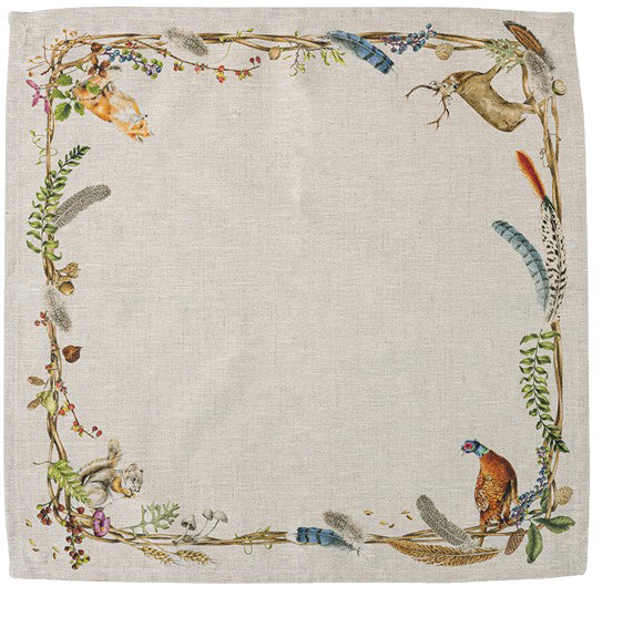 Celebrating the bounty of friends and abundant fare at harvest time, we’ve invited four new guests to our Autumn table! Part of our cherished Forest Walk collection, a stately stag, regal pheasant, thoughtful fox, and charming squirrel are featured within the corners of our beautifully woven linen napkin and bordered with our painterly Fall motif.
