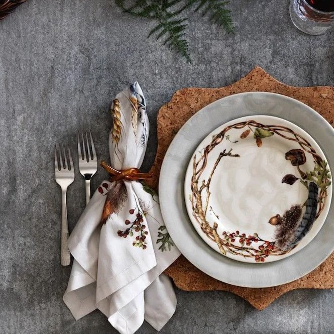 Depicting Juliska's artful scattering of found treasures from a Forest Walk, the multitude of exquisite colors and texture of nature's gift allows this napkin to go with every setting.