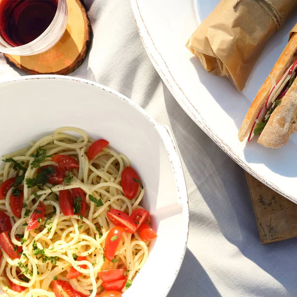 Shatterproof and ultra-chic, the Melamine Lastra White Large Stacking Serving Bowl replicates the beauty of Lastra in the perfect picnic accessory. Lightweight yet sturdy with a glossy finish, this collection is ideal for outdoor use or meals with children.