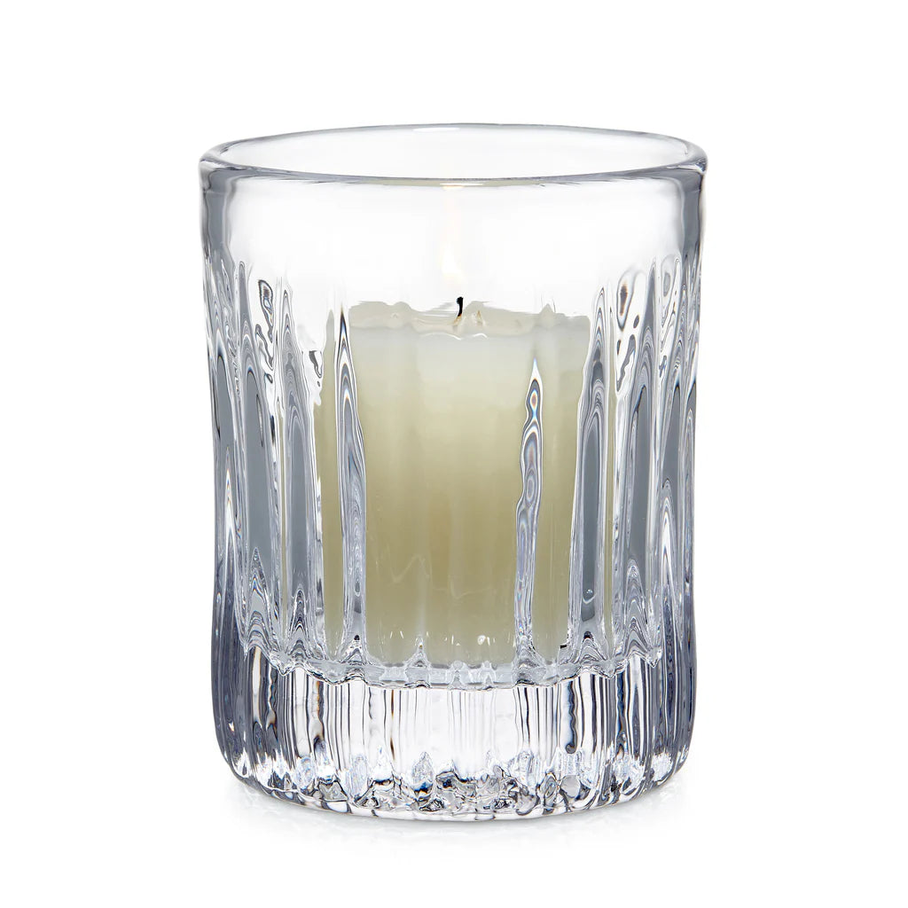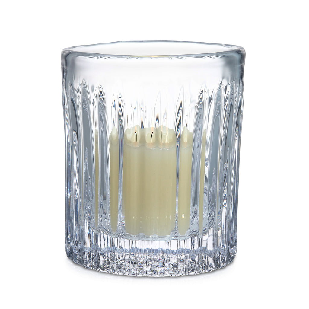 The Montpelier Hurricane brings the collection’s architectural fluted form into candlelight. Inspired by the neoclassical detailing found in Vermont’s capital buildings, its vertical ribbing gives the glass a structured, column-like presence while allowing light to move naturally through the form.