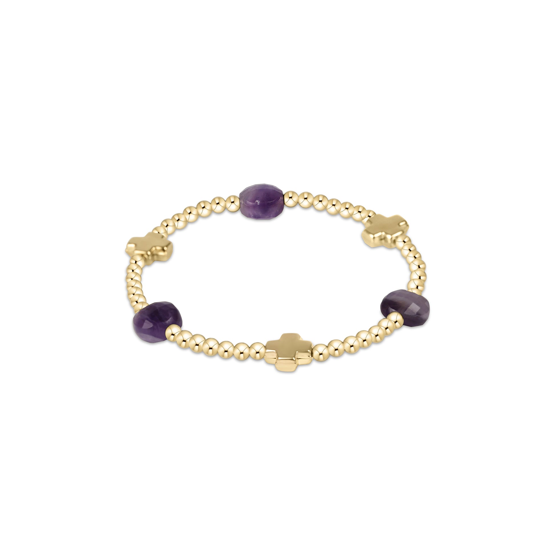 Signature Cross Admire Gold Pattern 3mm Bead Bracelet - Amethyst