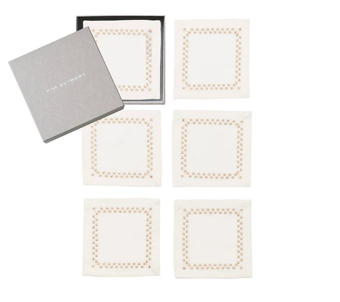 Starry Night Cocktail Napkin in White & Gold, Set of 6 in a Gift Box
