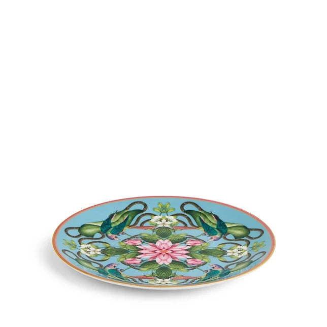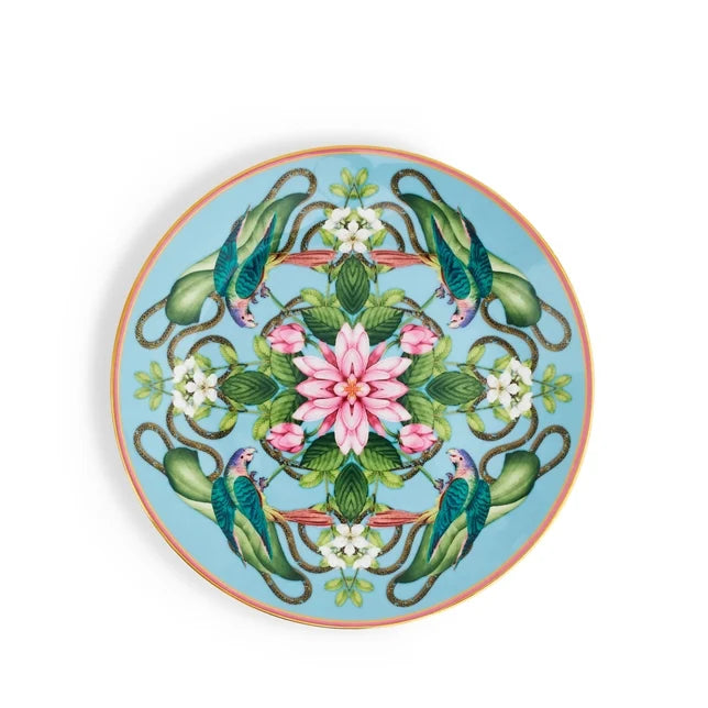 Showcase a unique selection of flora and fauna with this Wonderlust Menagerie 20cm Plate. Fine bone china is decorated using a blue and pink color palette and gold banding for extra luxury. Almost too good to put food on, use this elegant and striking plate for breakfast, lunch or dessert. Eclectic by nature, new Wonderlust designs such as this, are inspired by travels around the world and Wedgwood heritage archive patterns. Comes in our signature Wedgwood blue gift box.
